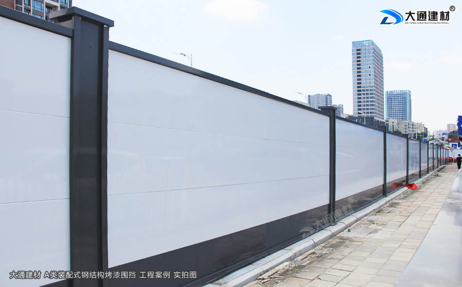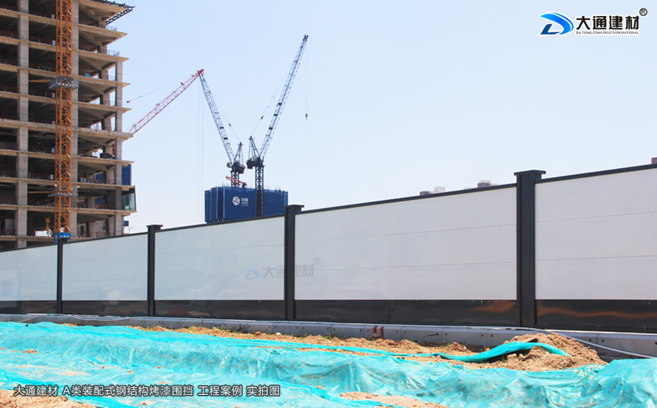 此項目工程施工地圍擋使用的是大通建材鋼結(jié)構(gòu)圍擋全龍骨A款,裝配式鋼結(jié)構(gòu)烤漆墻板不易生銹、不易變色、不易脫落、美觀平整、抗腐蝕 、耐久性強(qiáng),每塊圍擋墻板均有方通龍骨加固,降低重量,保證穩(wěn)固的前提下,提升性價比,使搬運(yùn)、安裝更輕便。