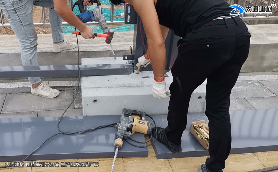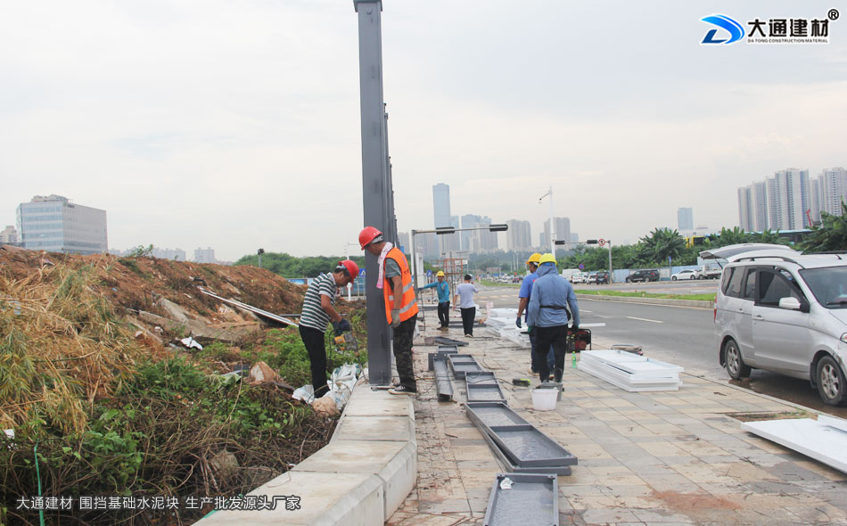 深圳市大通建材有限公司生產的圍擋基礎塊配合鋼結構圍擋半龍骨定制a款應用于廣東省東莞市南城街道的建筑工地項目施工中,以下展示 大通建材圍擋基礎與鋼結構圍擋安裝過程