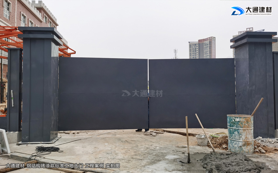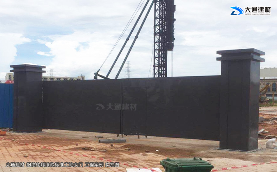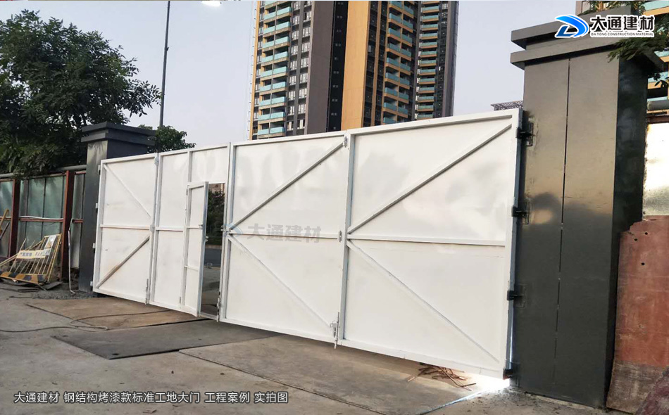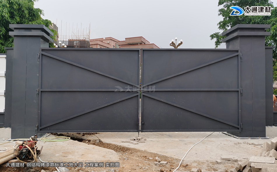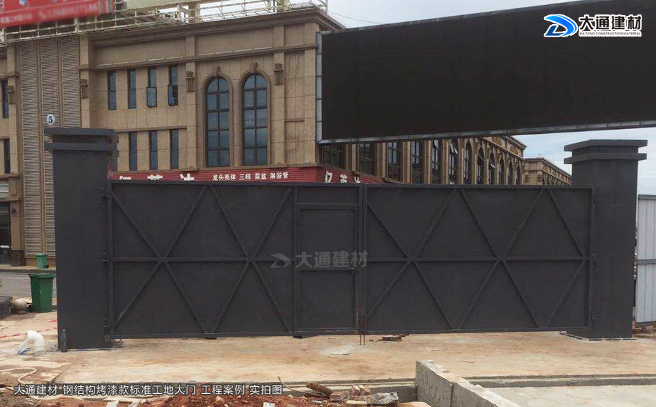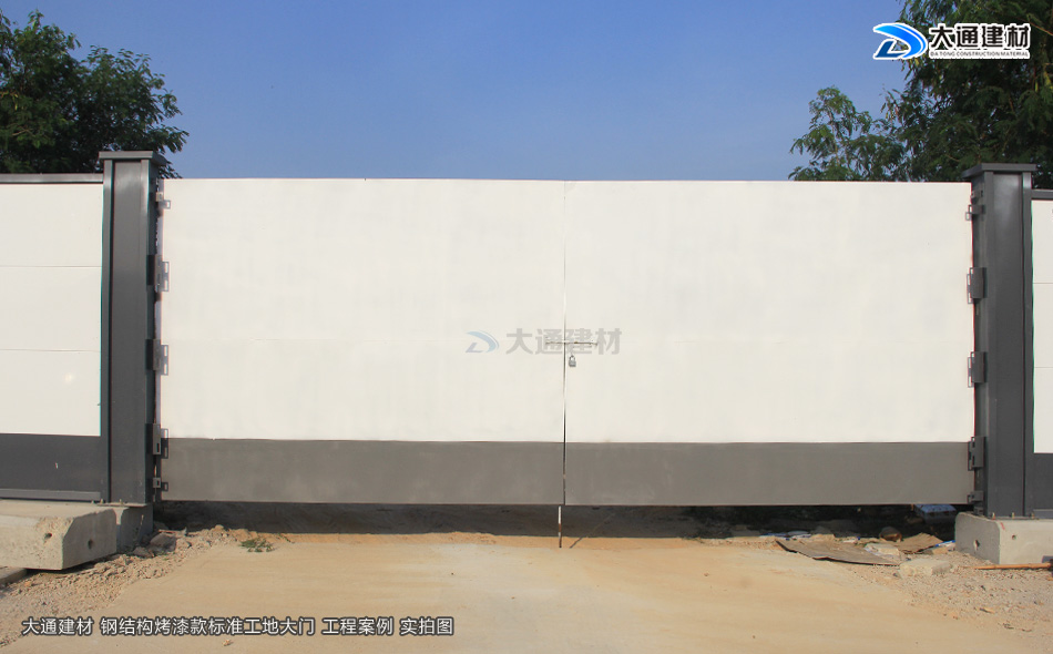 施工安全方案解決工程師,24小時在線等候您的咨詢!我們知道現(xiàn)在市政要求基本上每一個項目施工工地現(xiàn)場都需要安裝圍擋護(hù)欄后,方可施工,而施工現(xiàn)場工地大門基本是伴隨著施工圍擋存在的。今天大通小編與大家看看大通鋼結(jié)構(gòu)烤漆款標(biāo)準(zhǔn)工地大門有哪些款式。