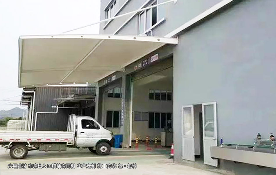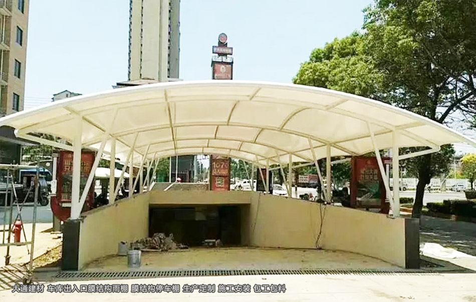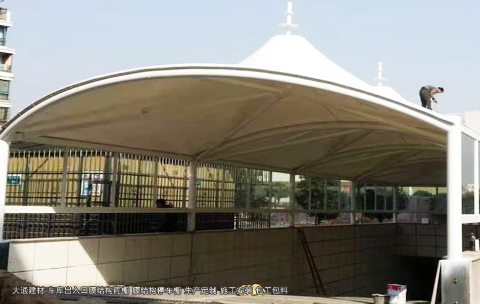 深圳市大通建材車庫出入口膜結(jié)構(gòu)雨棚可根據(jù)實際需求進(jìn)行定制和設(shè)計調(diào)整,滿足不同場所和用途的需求。大通擁有專業(yè)的生產(chǎn)定制、施工安裝 車庫出入口膜結(jié)構(gòu)雨棚的團(tuán)隊,廠家直銷各類膜結(jié)構(gòu)雨棚價格便宜。更多具體詳情可致電 13826562448 梁先生 期待您的來電咨詢選購